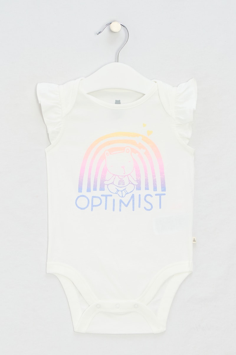 Lettrage, motifs ours et arc-en-ciel devant.