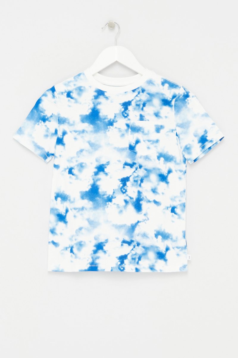 T-shirt en coton biologique tie and dye - Blanc et turquoise