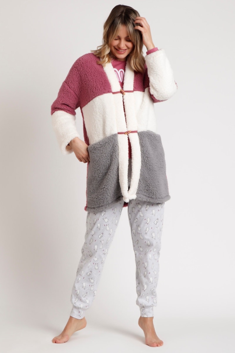 Peignoir polaire - Blanc et rose