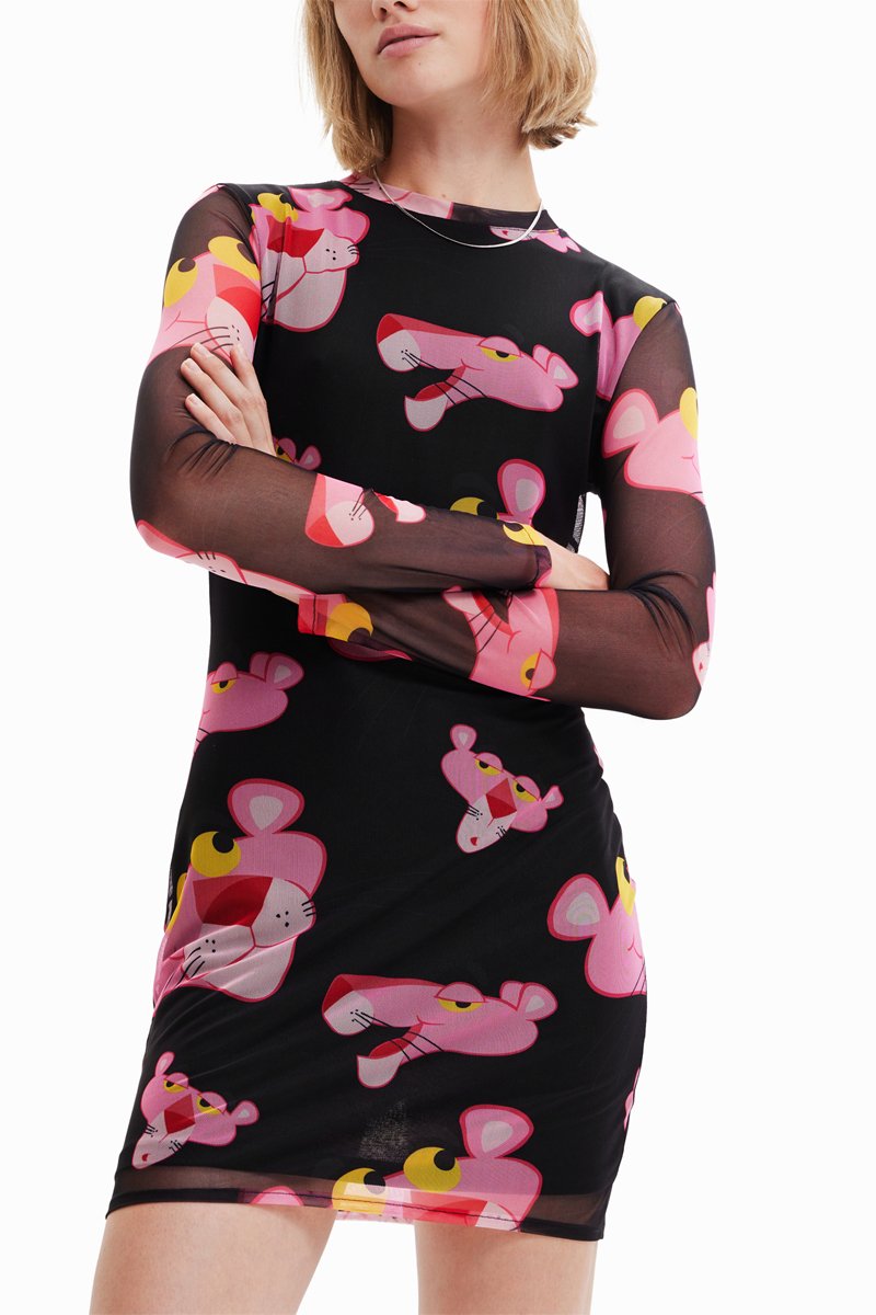 Robe fourreau La Panthère Rose - Noir et rose