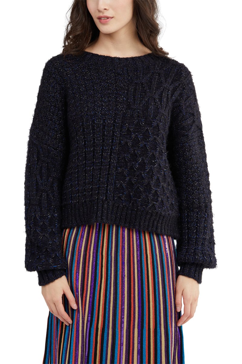 Matière : 46% acrylique, 37% polyester, 16% fils métallisés et 1% élasthanne