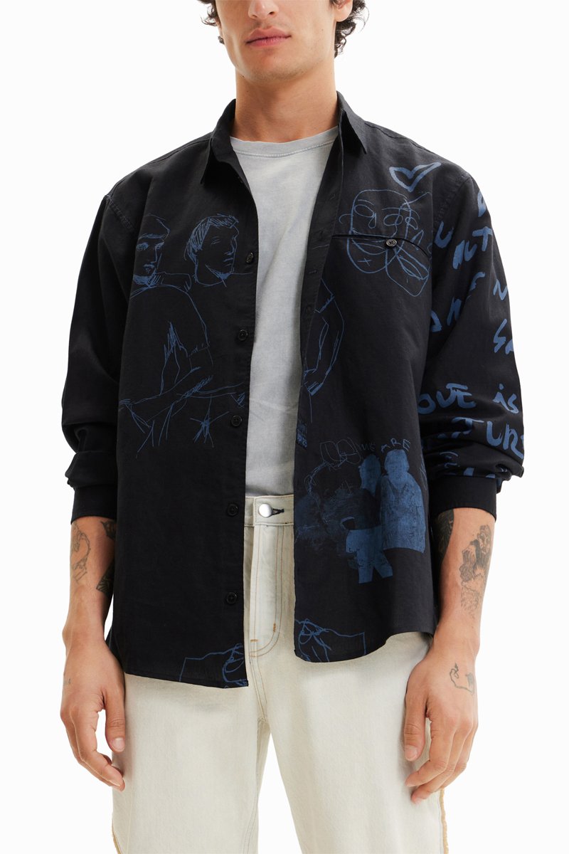 Chemise en lin mélangé à manches longues.