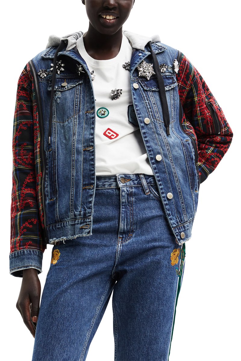 Motifs fantaisie et à carreaux devant, sur les manches et au dos.