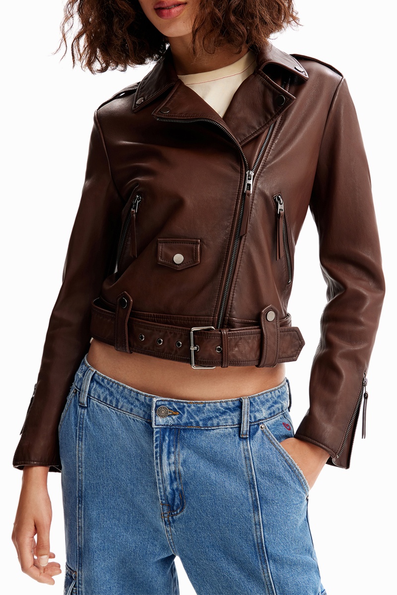 Blouson regular en cuir à manches longues.