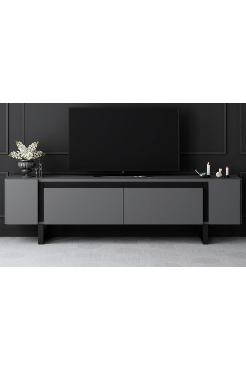 Meuble TV 2 abattants Yildiz - Anthracite et noir