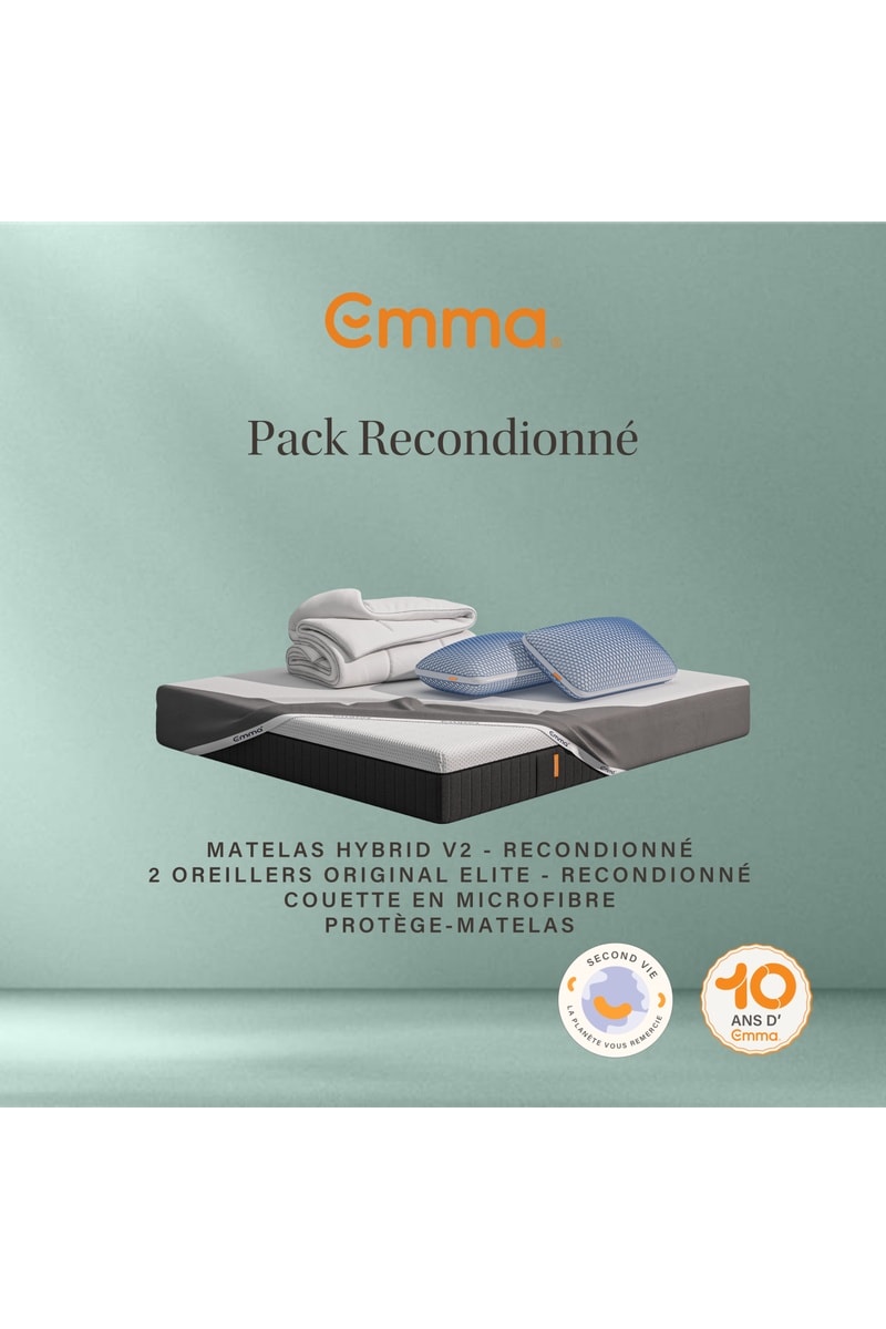 Ensemble 2 oreillers Original Elite reconditionné, matelas Hydrid II, surmatelas et couette Emma