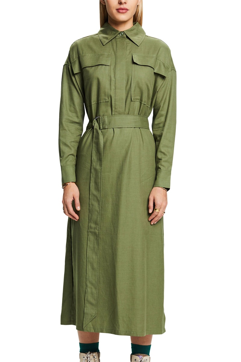 Robe midi en laine - Kaki