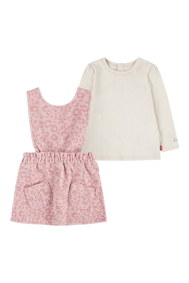 Robe chasuble en velours côtelé et t-shirt - Blanc et rose