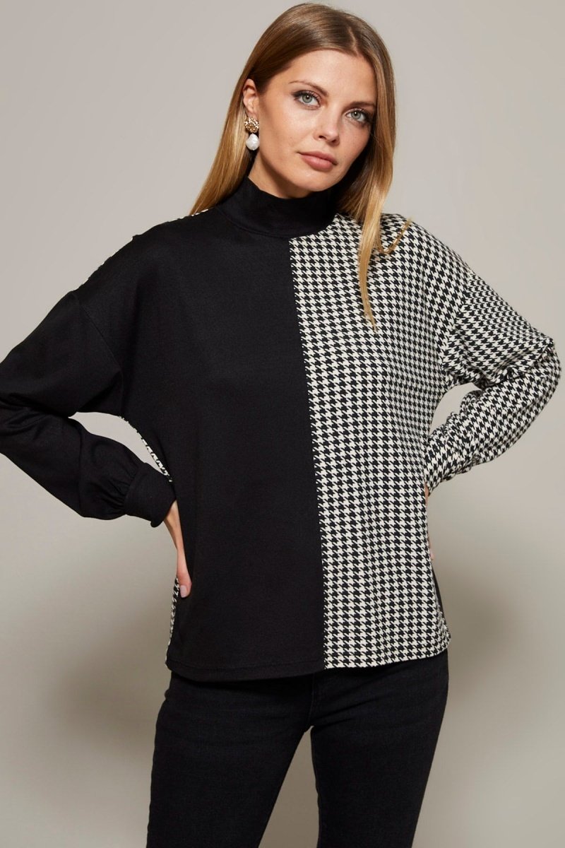Motifs pieds-de-poule sur les manches, devant et au dos.