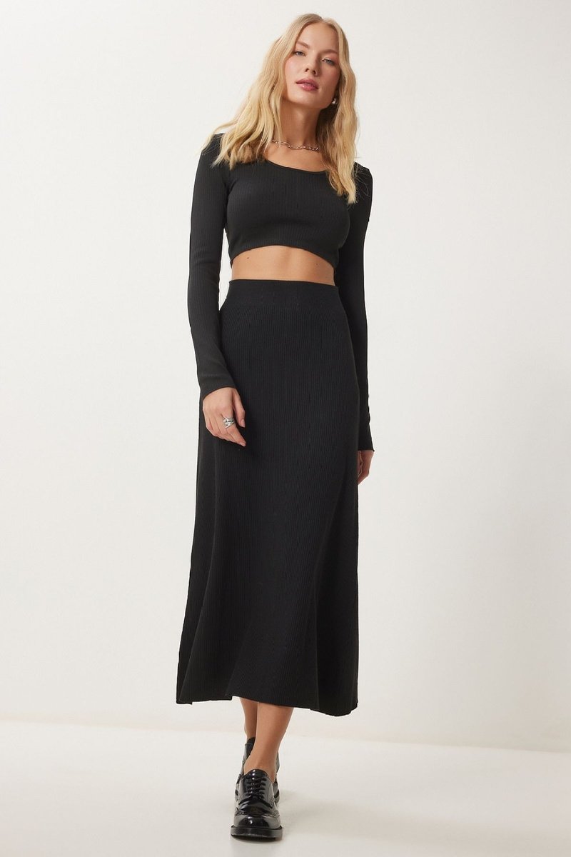 Jupe midi en maille côtelée.