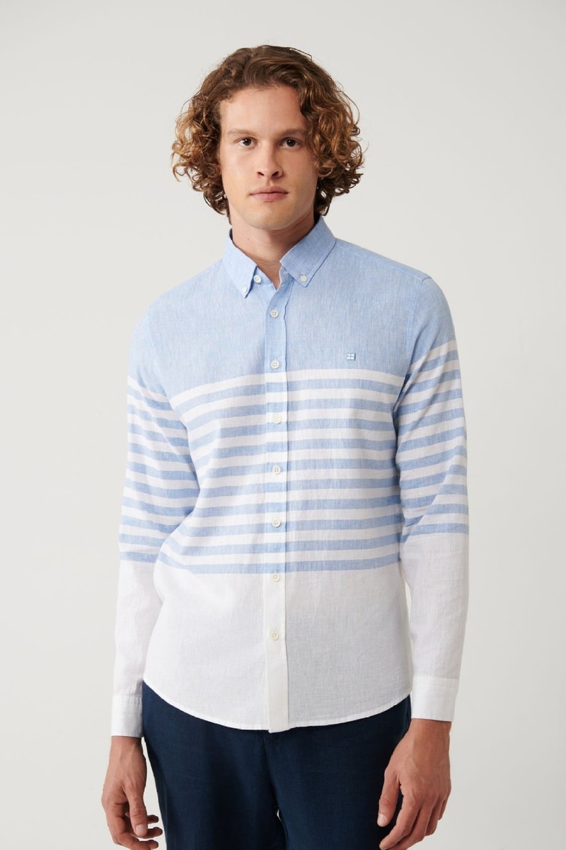 Chemise slim en lin - Bleu