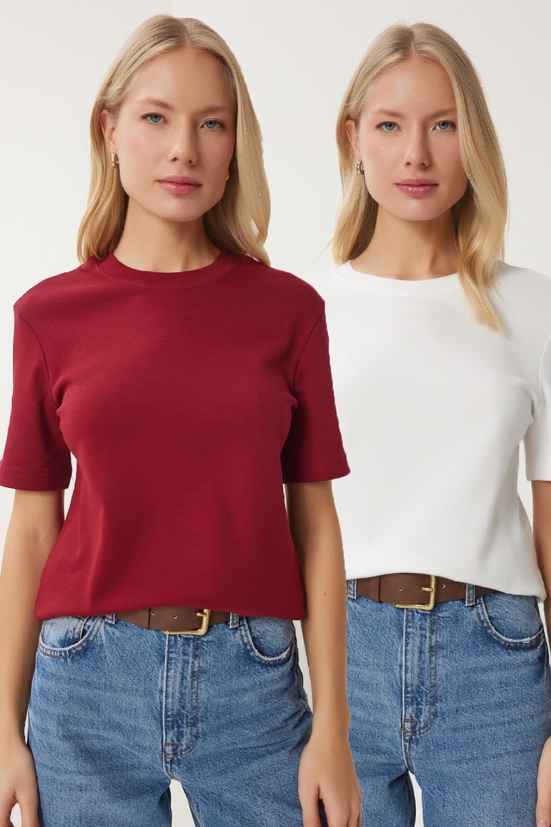 2 t-shirts regular - Bordeaux et blanc