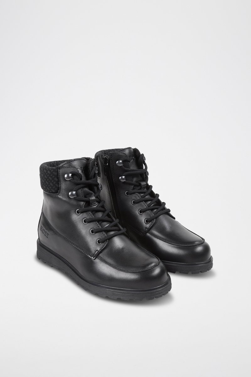 Fermeture à lacets devant et zippée sur le côté intérieur.