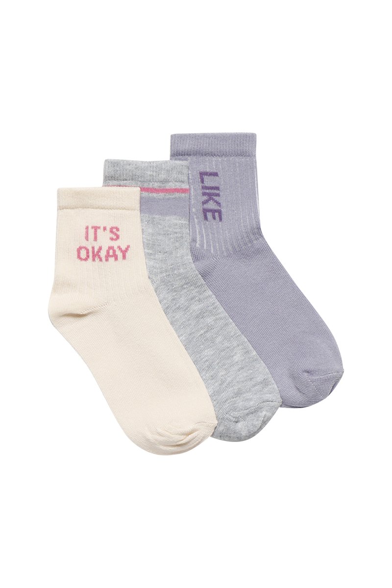 3 paires de chaussettes dont 2 avec lettrage sur le côté.