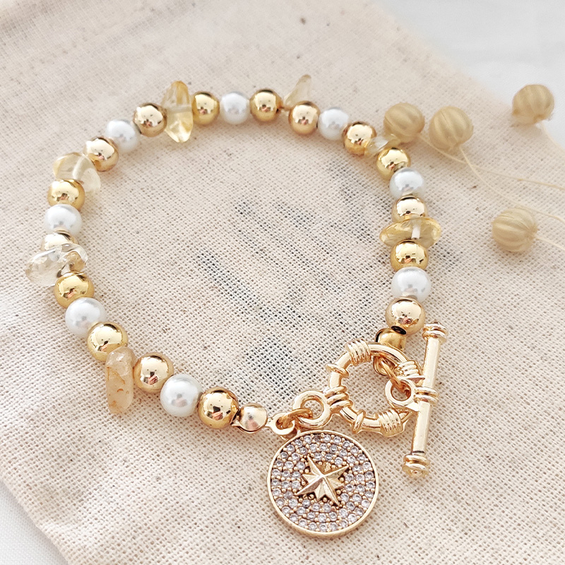 Bracelet étoile - Laiton plaqué or, perles synthétiques & zircons