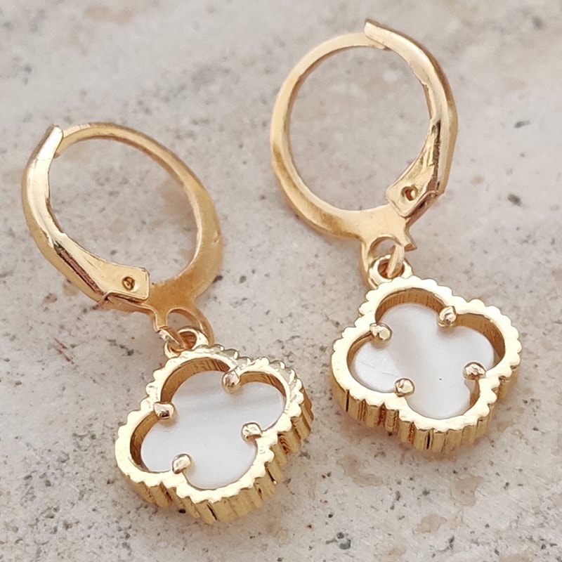 Boucles d'oreilles - Laiton plaqué or - Blanc
