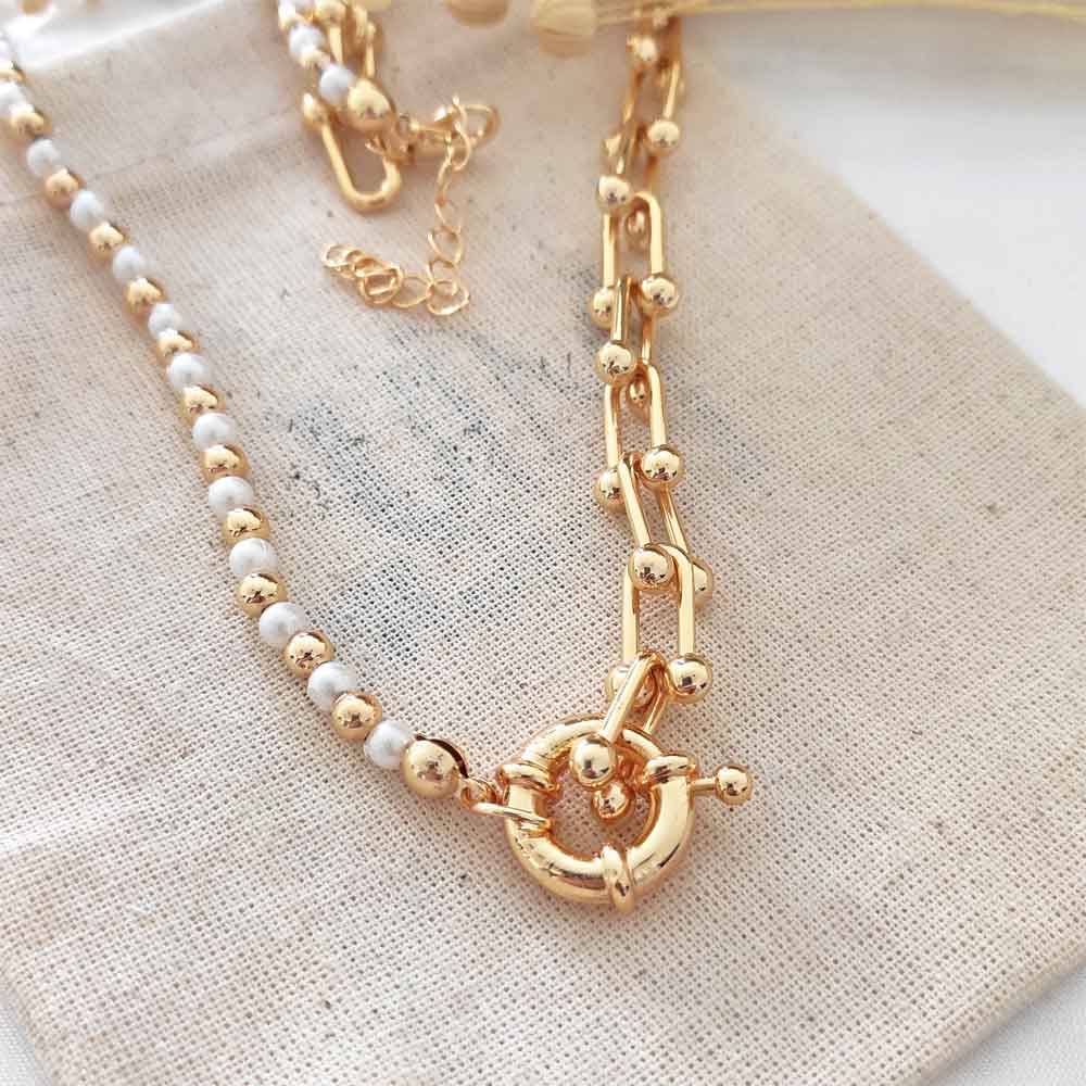 Collier - Laiton doré & perles synthétiques