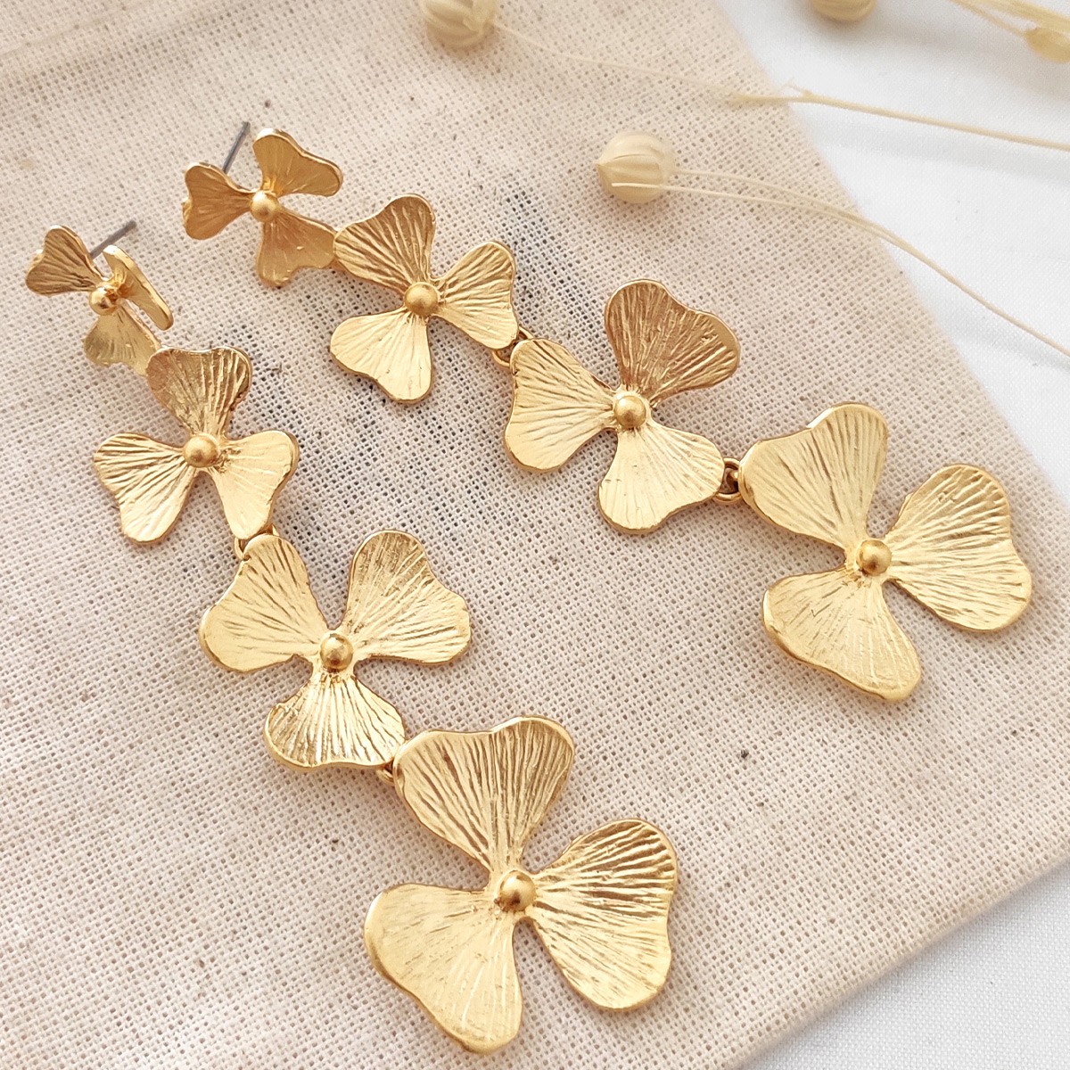 Boucles d'oreilles feuilles - Laiton plaqué or