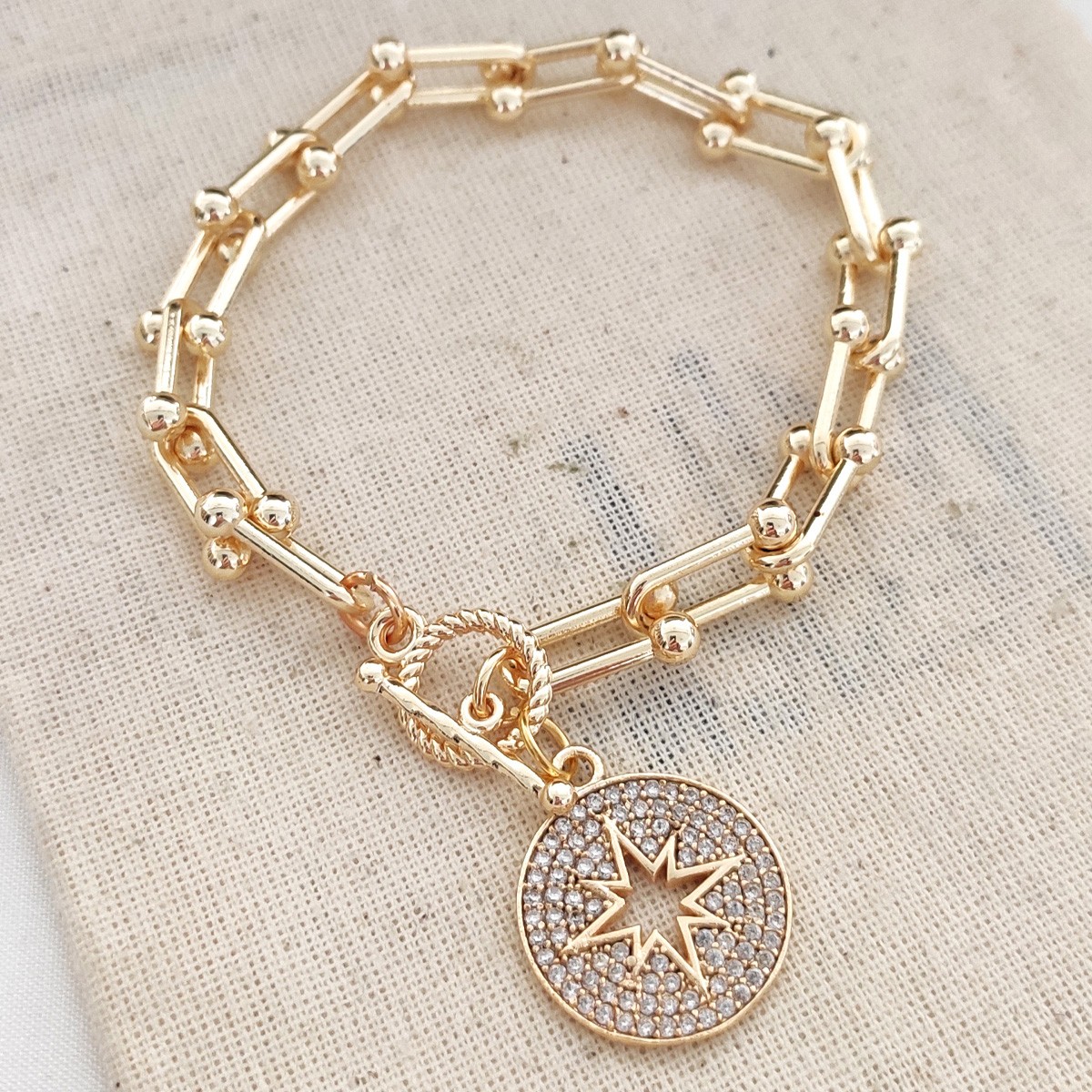 Bracelet Pole Star - Laiton plaqué à l'or fin & zirconium