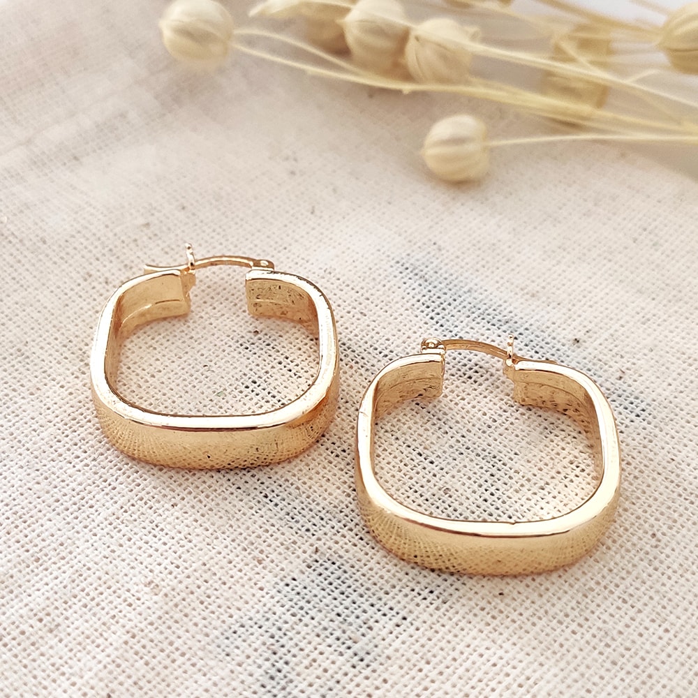 Craquez pour ces boucles d'oreilles carrées en laiton plaqué or ! Leur design géométrique est à la fois moderne et élégant.