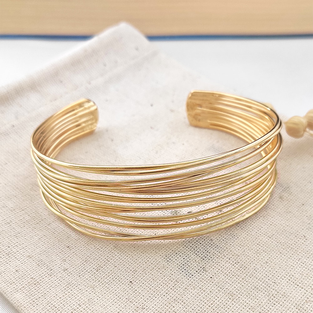 Ce bracelet multirangs plaqué or apporte une touche d'élégance à votre poignet. Parfait pour superposer ou porter individuellement, il offre une polyvalence élégante.