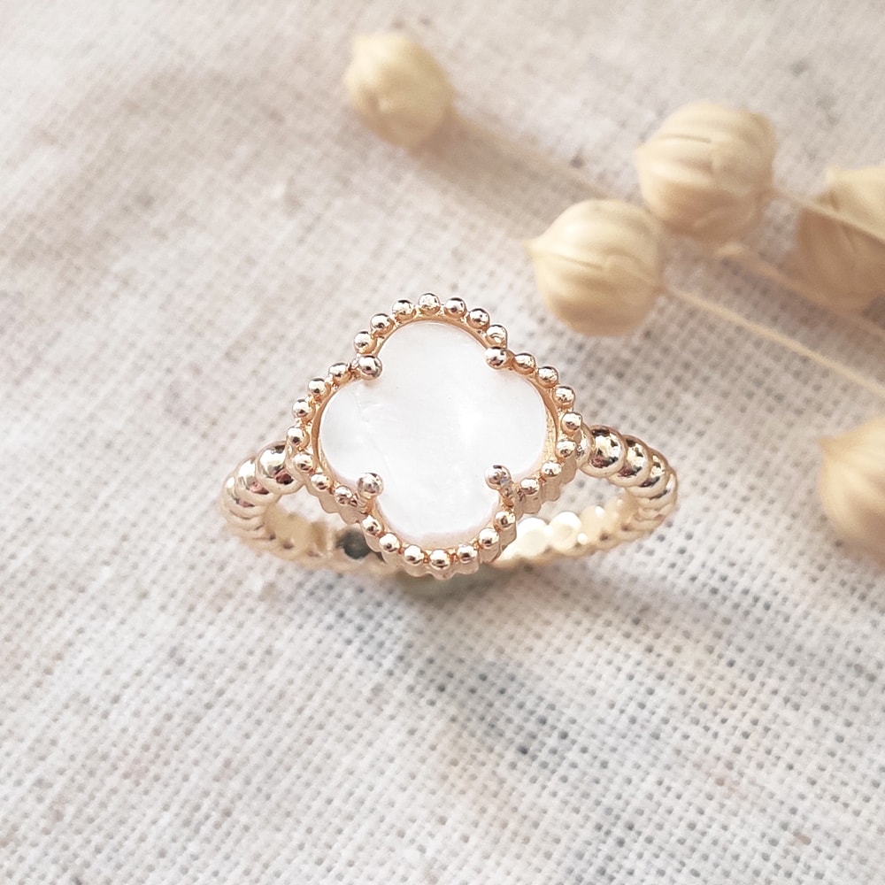 Bague réglable trèfle - Laiton plaqué or & nacre blanche