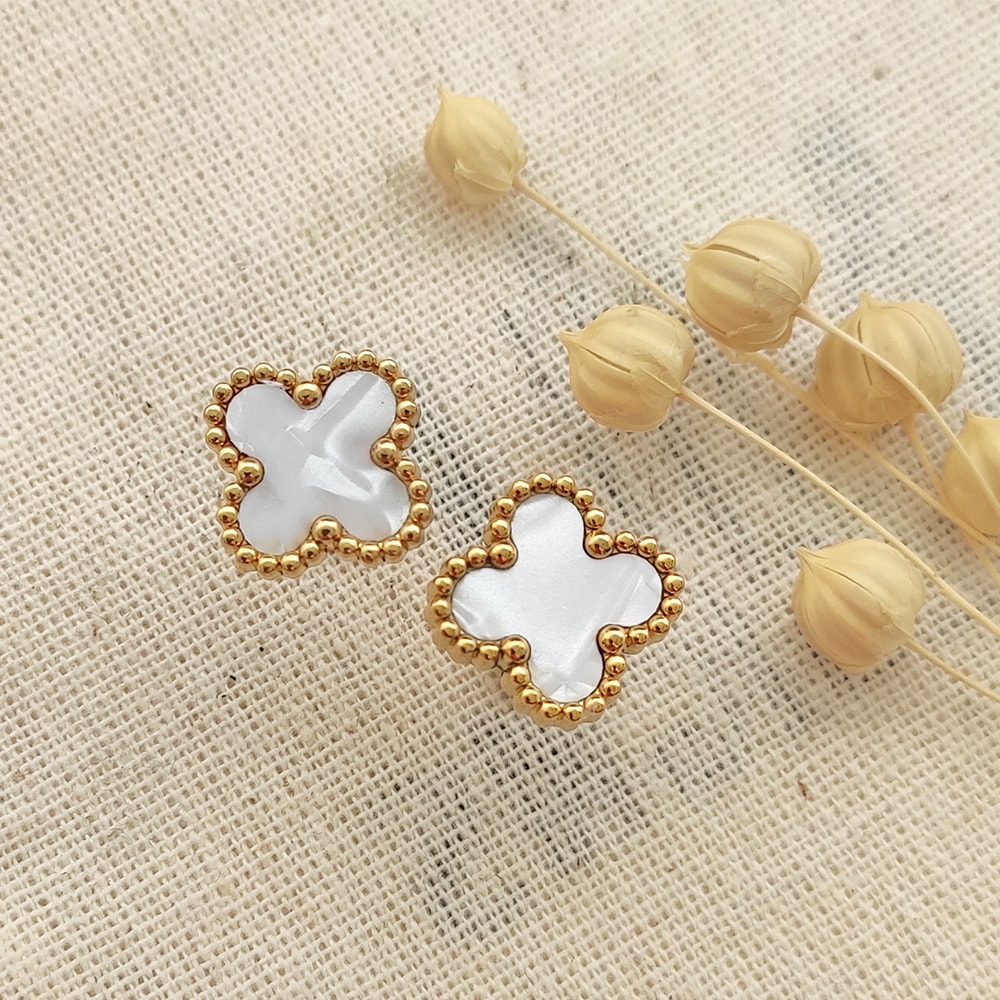 Boucles d'oreilles trèfle - Laiton plaqué or & nacre