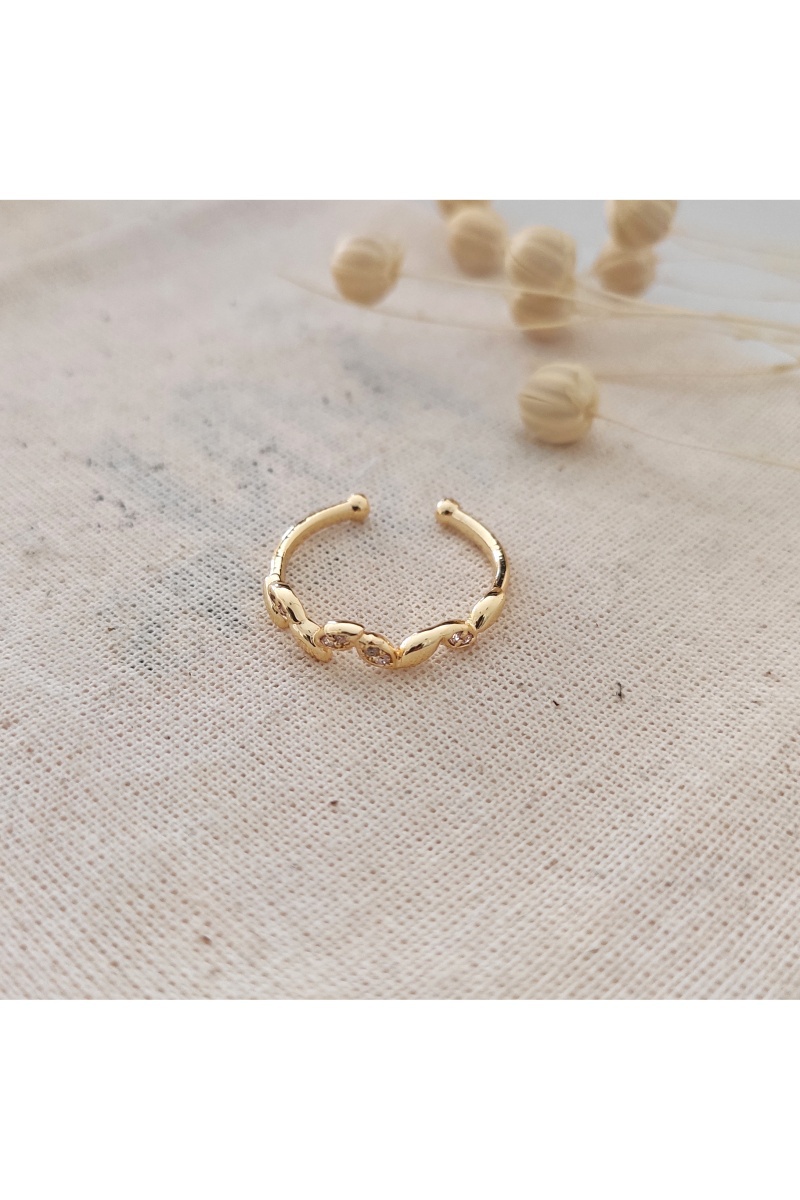 Bague réglable dorée à l'or fin jaune sertie de zircons.