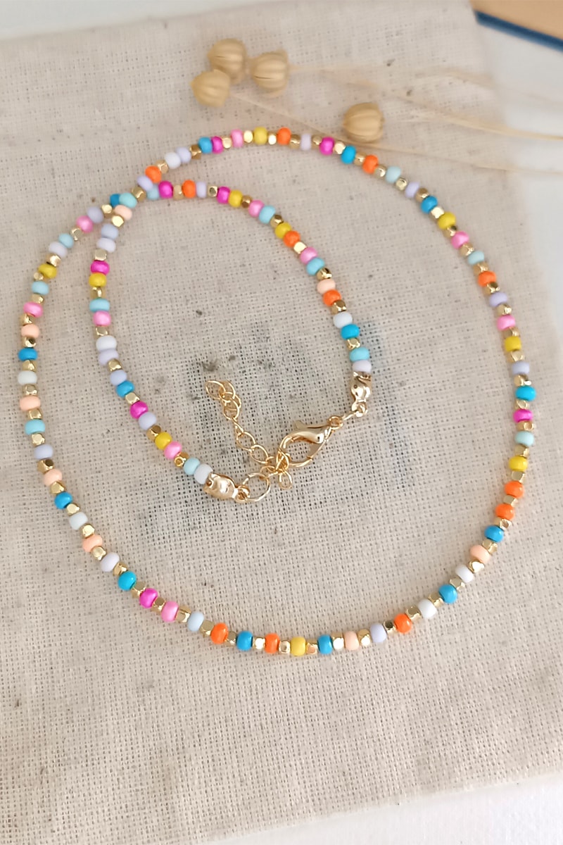 Collier en plaqué or jaune serti de perles Miyuki.