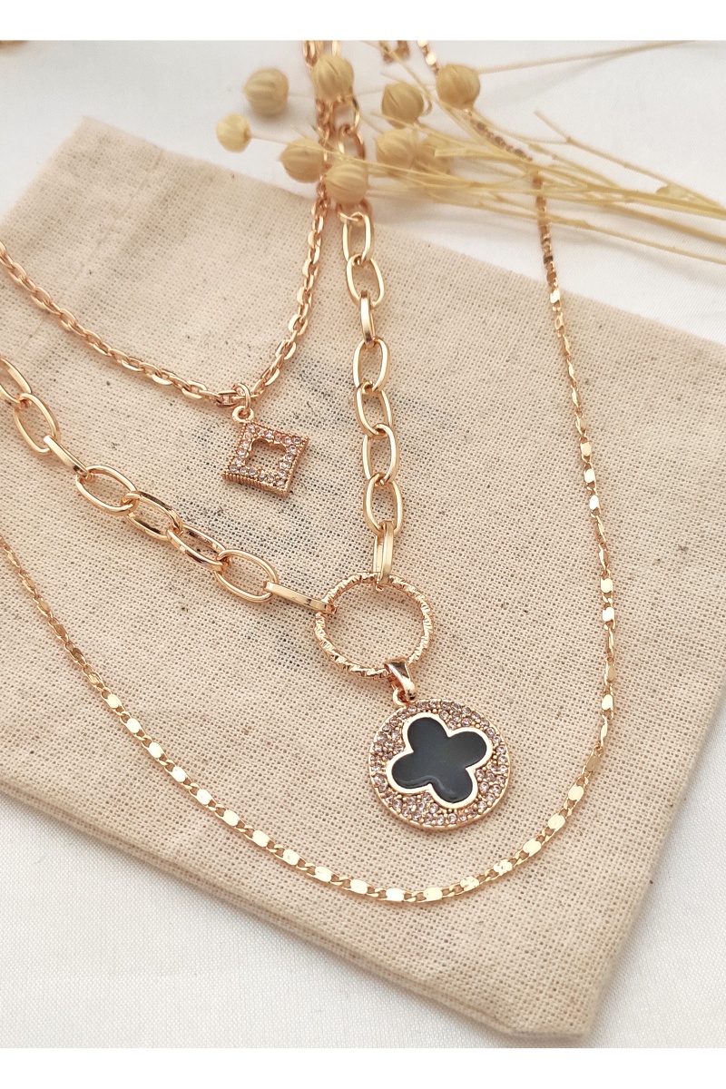 Collier triple-rang doré à l'or jaune.