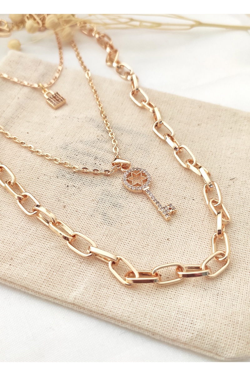 Collier triple-rang doré à l'or fin jaune.