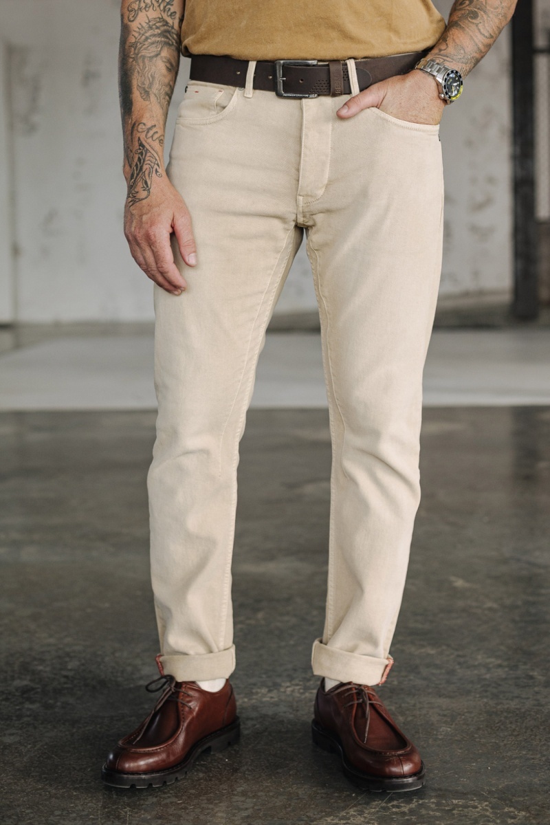 Matière twill légèrement usé, stretch.