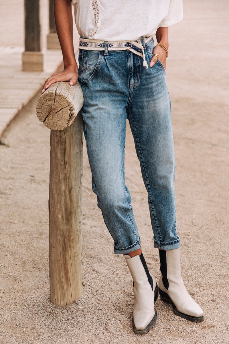 Jean mom 7/8 taille haute Natasha - Bleu clair