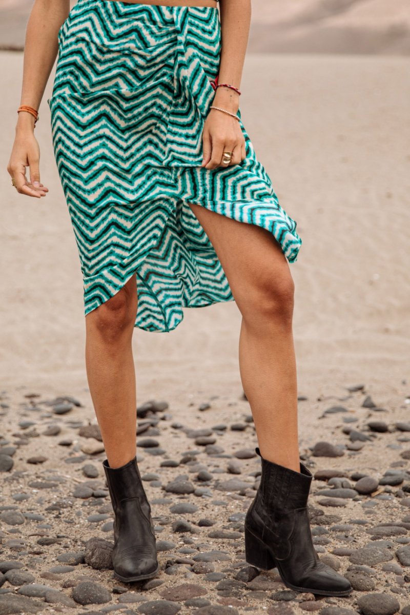 Matière fluide et douce imprimée dans un motif vague bicolore.