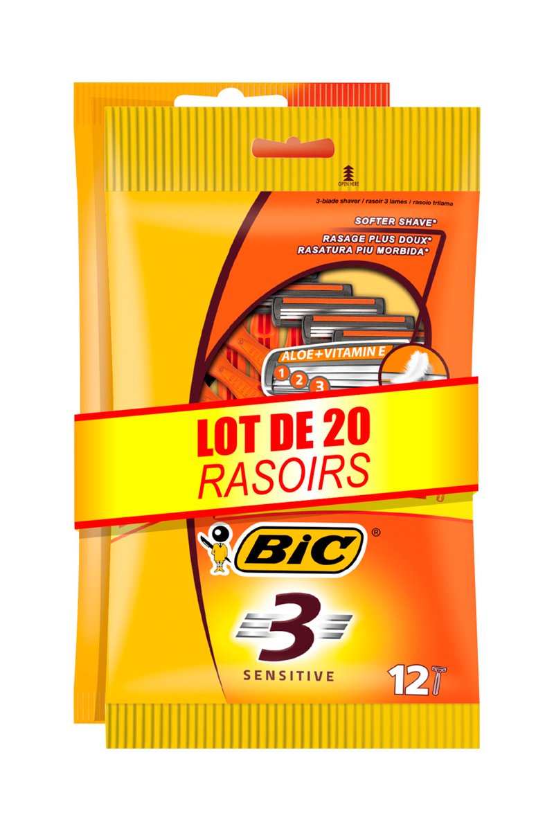 20 rasoirs jetables pour homme Bic 3 Sensitive - 3 lames