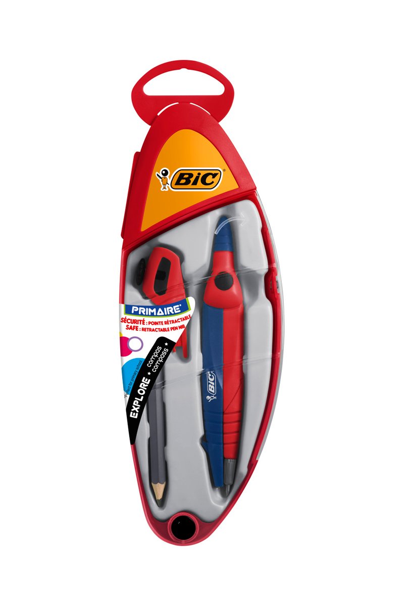 BIC Explore Compas Interchangeable Mine ou Crayon - Pointe Rétractable - Coffret Complet - Coloris aléatoire