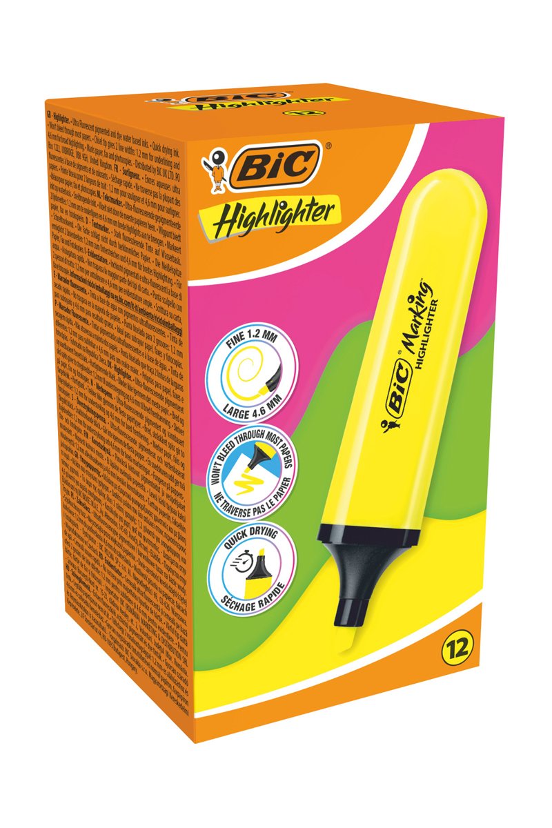 12 surligneurs Marking Flat - Jaune fluo