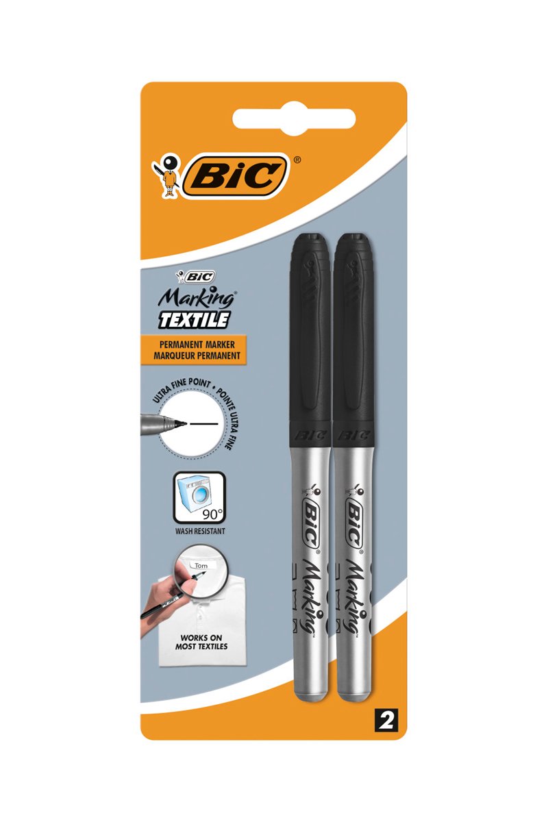 BIC Marking Texile Feutres Textiles Pointe Ultra Fine - Noir, Blister de 2