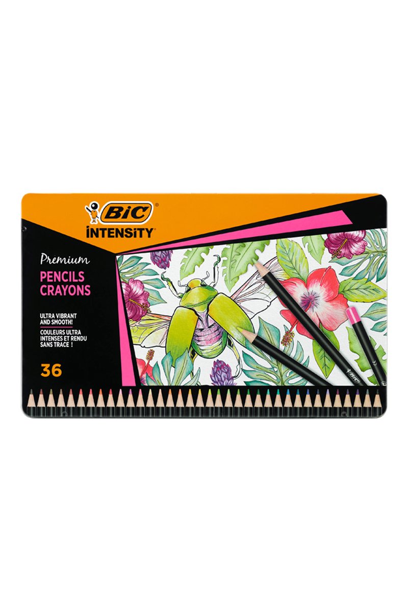 Contient 36 crayons de couleur en bois Premium BIC Intensity qui offrent une expérience de coloriage douce et fluide, surpassant celle de nos crayons de couleur classiques.