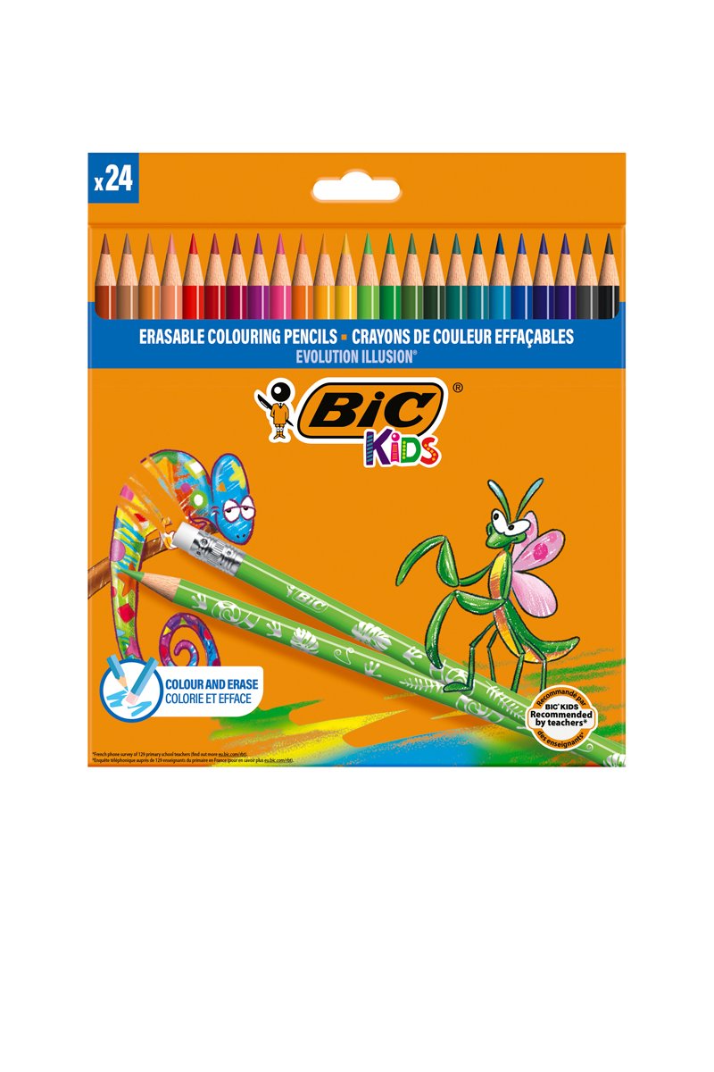 Les crayons de couleur BIC Kids Evolution Illusion sont conçus pour s’effacer facilement et proprement grâce à leur embout gomme bagué.