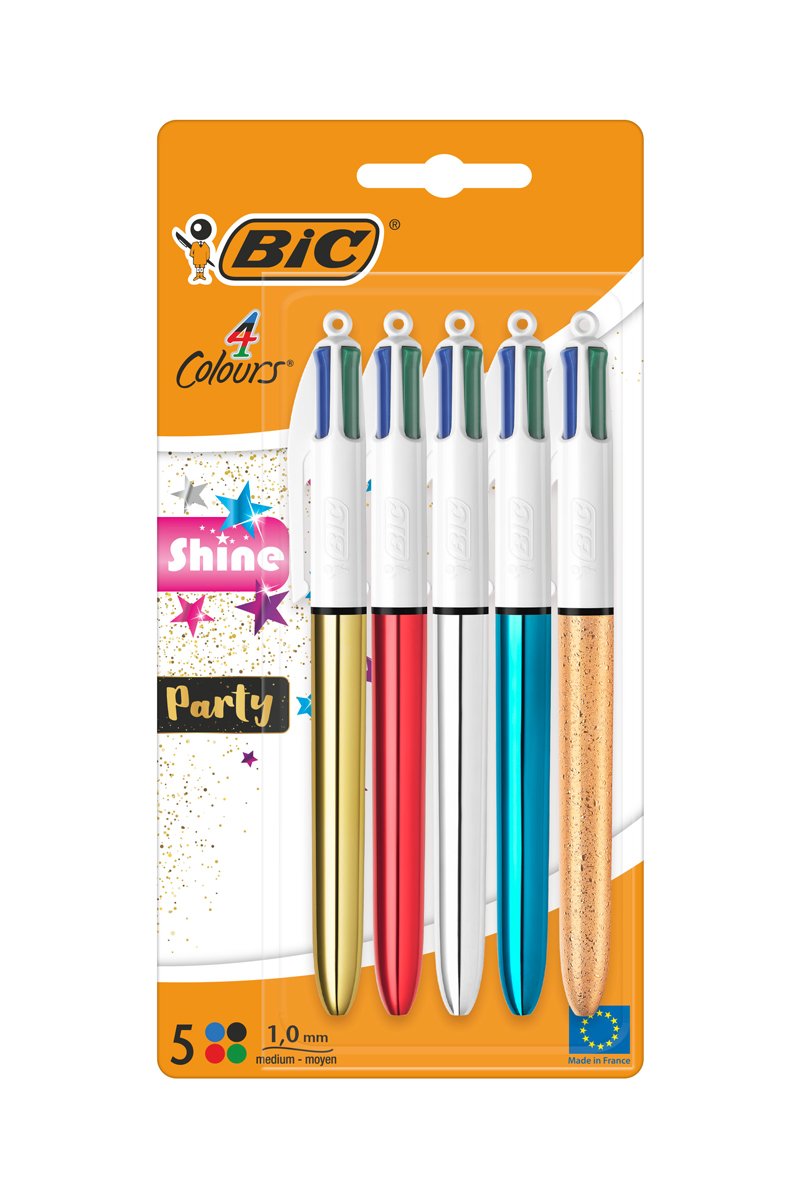 5 stylos-bille 4 couleurs Shine et Party - 4 encres