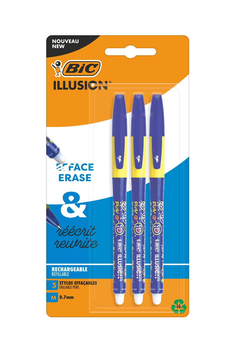 3 Illusion stylos-bille effaçables et rechargeables pointe moyenne.