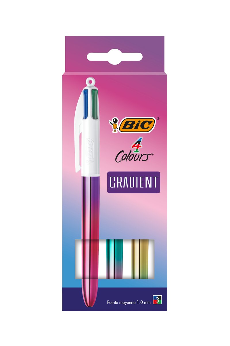 3 stylos-bille 4 couleurs irisés - 4 encres