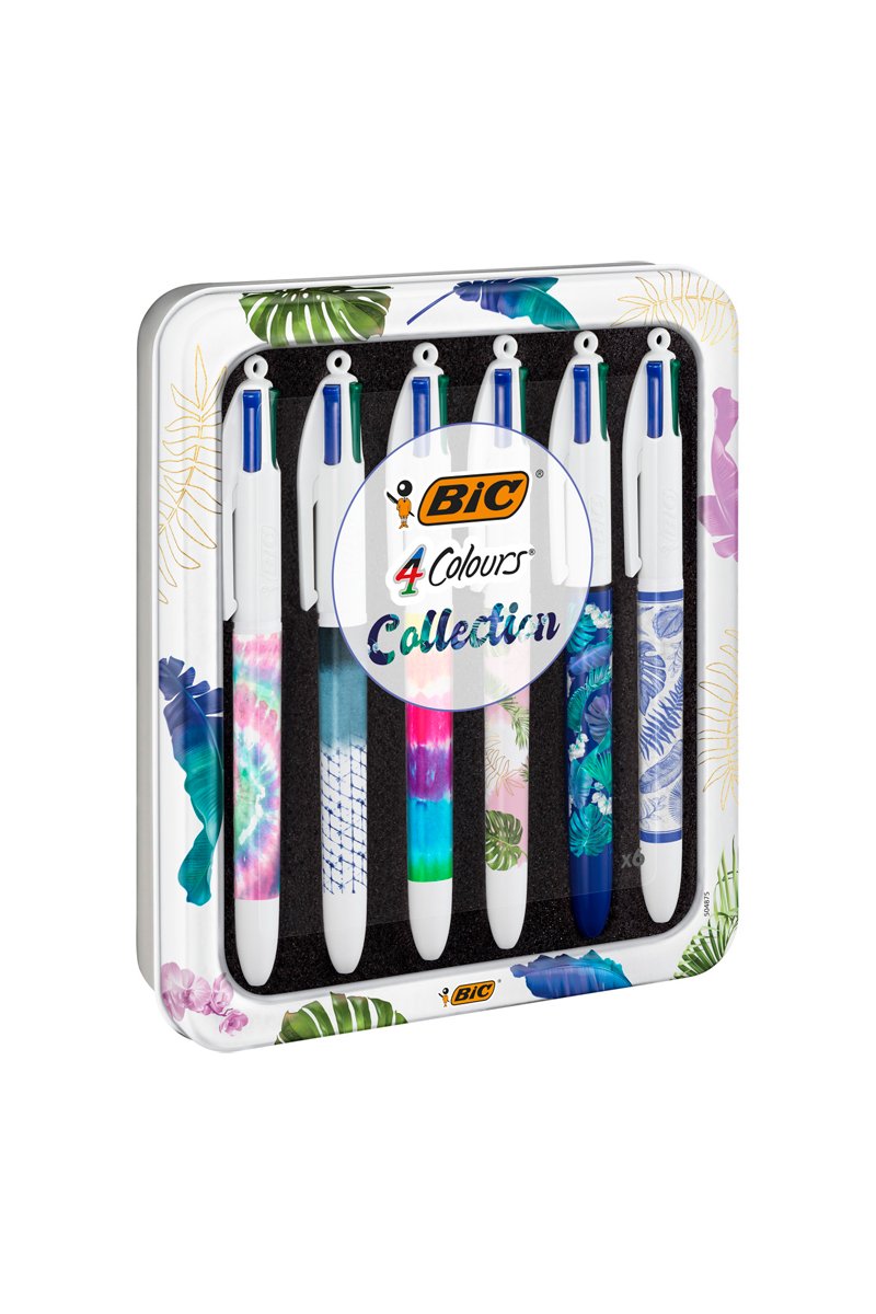 Boîte en métal 6 stylos-bille 4 couleurs Botanique et Tie & Dye - 4 encres