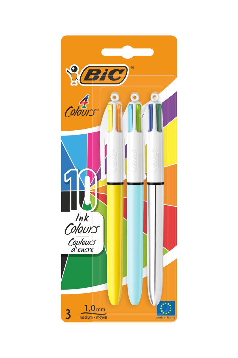 3 stylos-bille 4 couleurs Shine, Fun et Sun - 12 encres