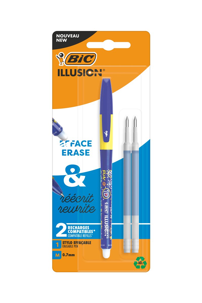 Stylo effaçable Illusion et 2 recharges - Encre bleue