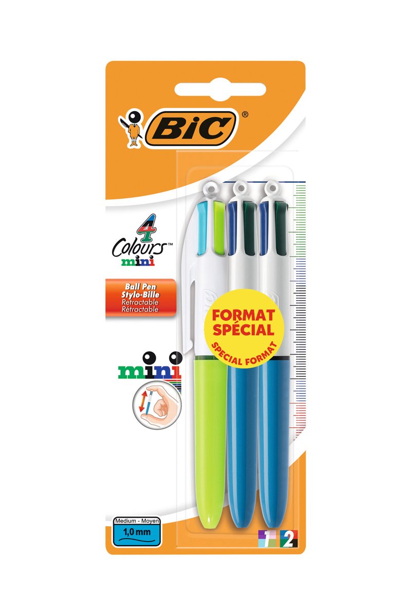 3 mini stylos-bille 4 couleurs Colours® - 8 encres