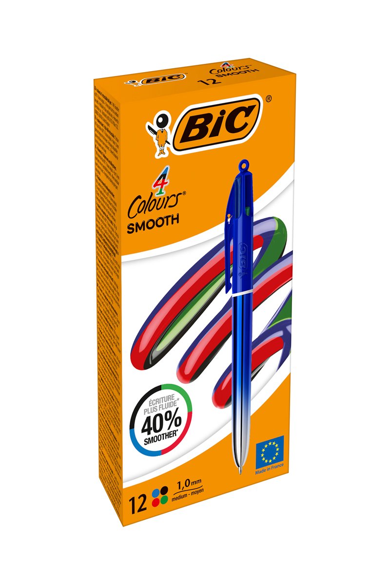 12 stylos-bille 4 couleurs Smooth - 4 encres