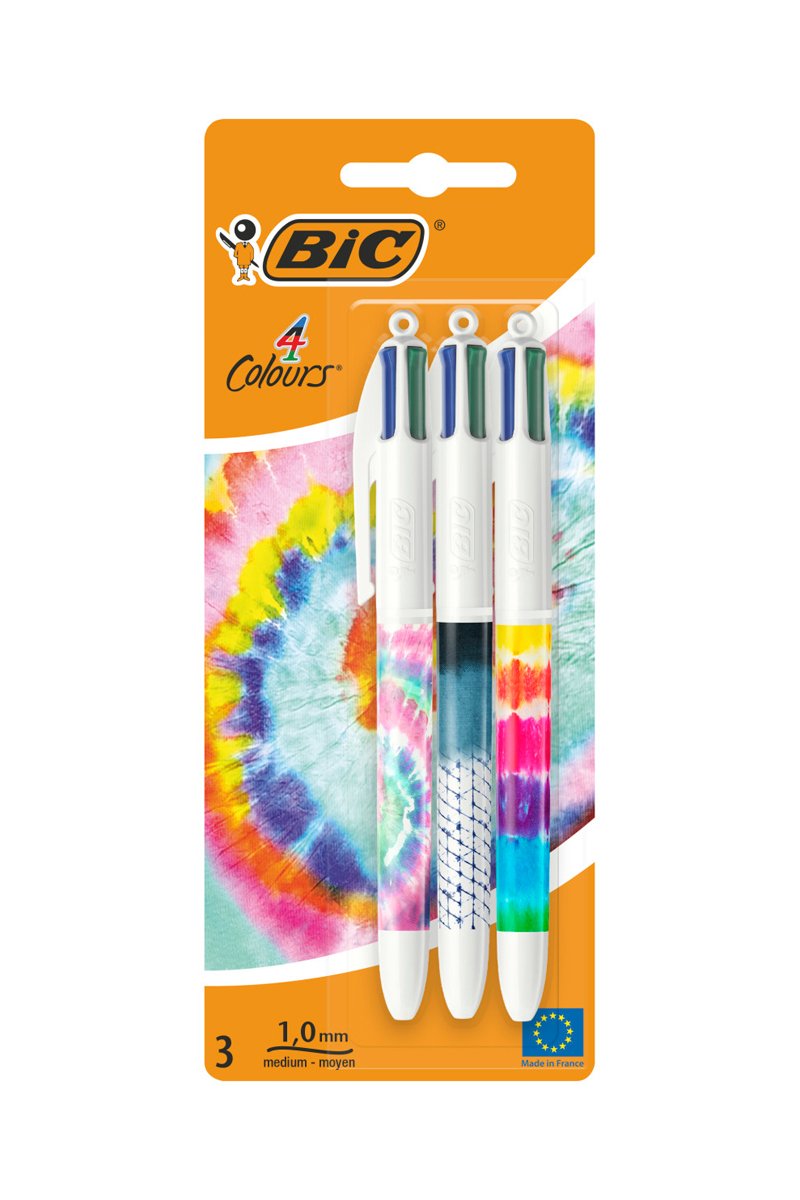 3 stylos-bille 4 couleurs Tie & Dye.