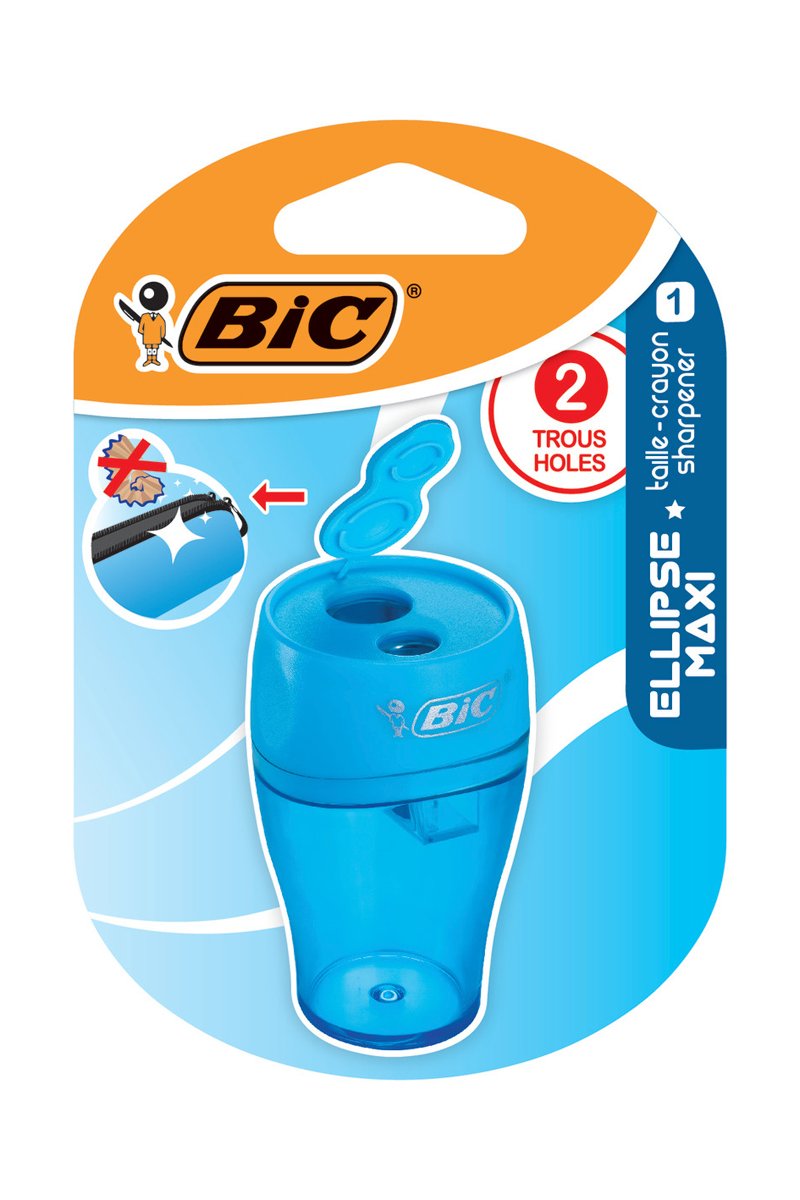 BIC Ellipse Taille-Crayons 2 Trous avec Grand Réservoir - Vert, Bleu ou Corail (Sans Choix Possible), Blister de 1